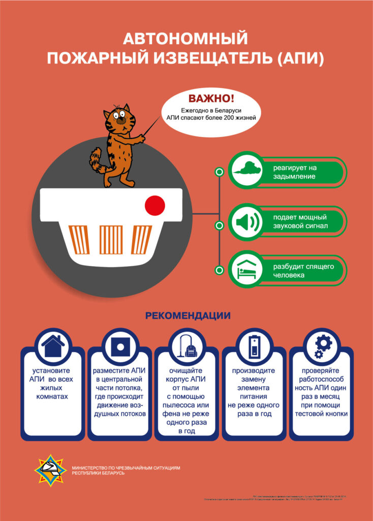 С 24 ноября по 14 декабря 2025 года пройдет широкомасштабная информационная компания для информирования населения об эффективности использования автономных пожарных извещателей.В рамках компании спасатели сделают акцент на посещение домовладений одиноких и одиноко проживающих пожилых граждан, инвалидов, многодетных семей и пожилых граждан, проживающих с лицами, склонными к злоупотреблению алкогольными напитками, проведение работы по информированию населения об установке и своевременному обслуживанию АПИ. Автономный пожарный извещатель – это простое в эксплуатации и эффективное средство раннего обнаружения пожара. Доказательством тому служат реальные цифры: только в прошлом году, благодаря своевременному срабатыванию АПИ, в Беларуси были спасены жизни 93 человек, 21 из которых — дети. За первые 10 месяцев текущего года автономные извещатели помогли спасти еще 53 человека, включая 12 детей.